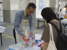 また、ご家族連れを中心に多くの方にお立ち寄りいただき、ご家庭での紙パックの取り扱いについてお話を伺うことができました。「日常的にリサイクルを実践している」という方、「開いてまな板として活用される」という方、あるいは「可燃ごみとして処分している」という方など、現状は様々であることを改めて認識しました。