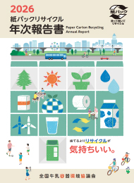全国牛乳容器環境協議会では紙パックリサイクル活動の総まとめとして、毎年「紙パックリサイクル年次報告書」を発刊しています。紙パックの回収率・リサイクル率向上を目指して取組みを行った種々の活動について報告しています。
