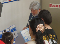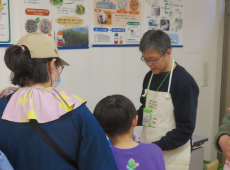 パネルを端から端まで見回しクイズの答えを見つけると、元気に答える子、恥ずかしそうに答える子、一緒になってパネルを見回してクイズの答えを探す親子が見られました。パネルを見て保護者がいろいろと質問されるケースもありました。クイズの正解に子供たちは一喜一憂しながら、楽しくリサイクルについて学びました。参加してくれたお礼に、学んだ内容が記載されているノートを渡しました。